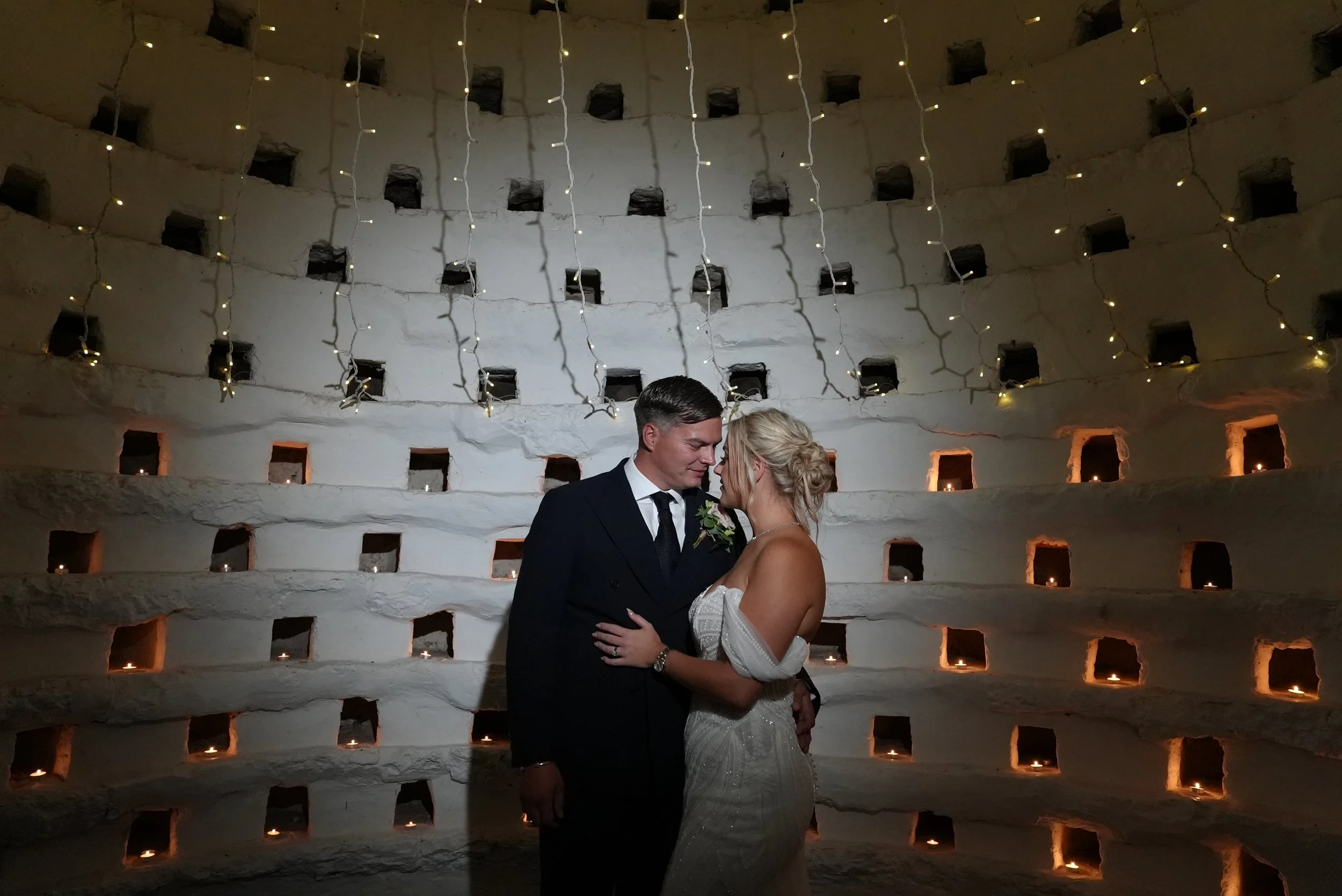 A beautiful and emotional wedding at Westenhanger Castle featuring romantic candlelit moments in the Dovecote, elegant black tie styling and cinematic couple shots after the rain passed. A day filled with warmth, colour and unforgettable storytelling.